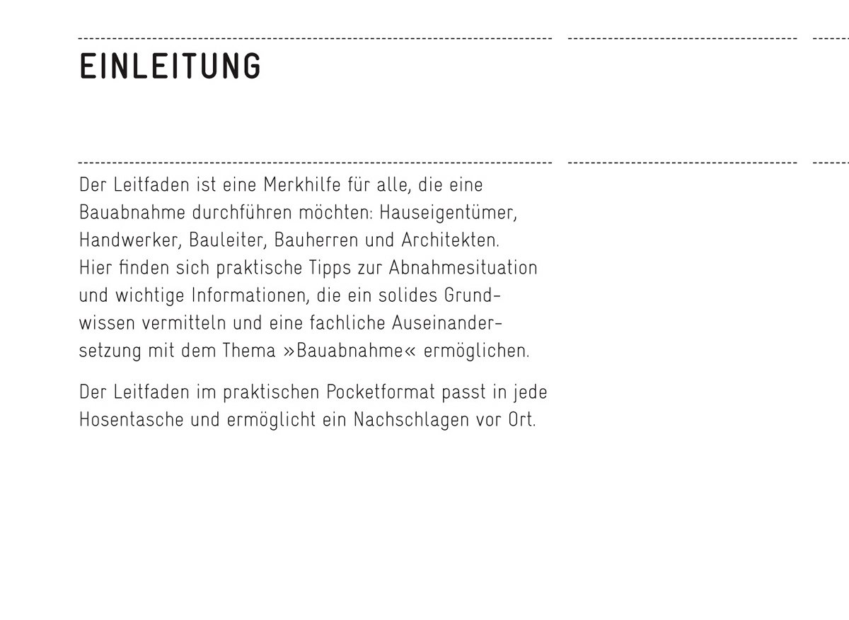 Der Leitfaden für den Mängelcheck ist eine Merkhilfe für alle, die eine Bauabnahme durchführen möchten: Hauseigentümer, Handwerker, Bauleiter, Bauherren und Architekten. Hier finden sich praktische Tipps zur Abnahmesituation und wichtige Informationen, die ein solides Grundwissen vermitteln und eine fachliche Auseinandersetzung ermöglichen. Der Leitfaden im praktischen Pocketformat passt er in jede Hosentasche und ermöglicht ein schnelles Nachschlagen vor Ort. Weitere Produkte aus der Baumängelserie: Das Mängelquartett - Baumängel sind kein Kinderspiel und die Mängelliste - Raumkontrolle leicht gemacht.